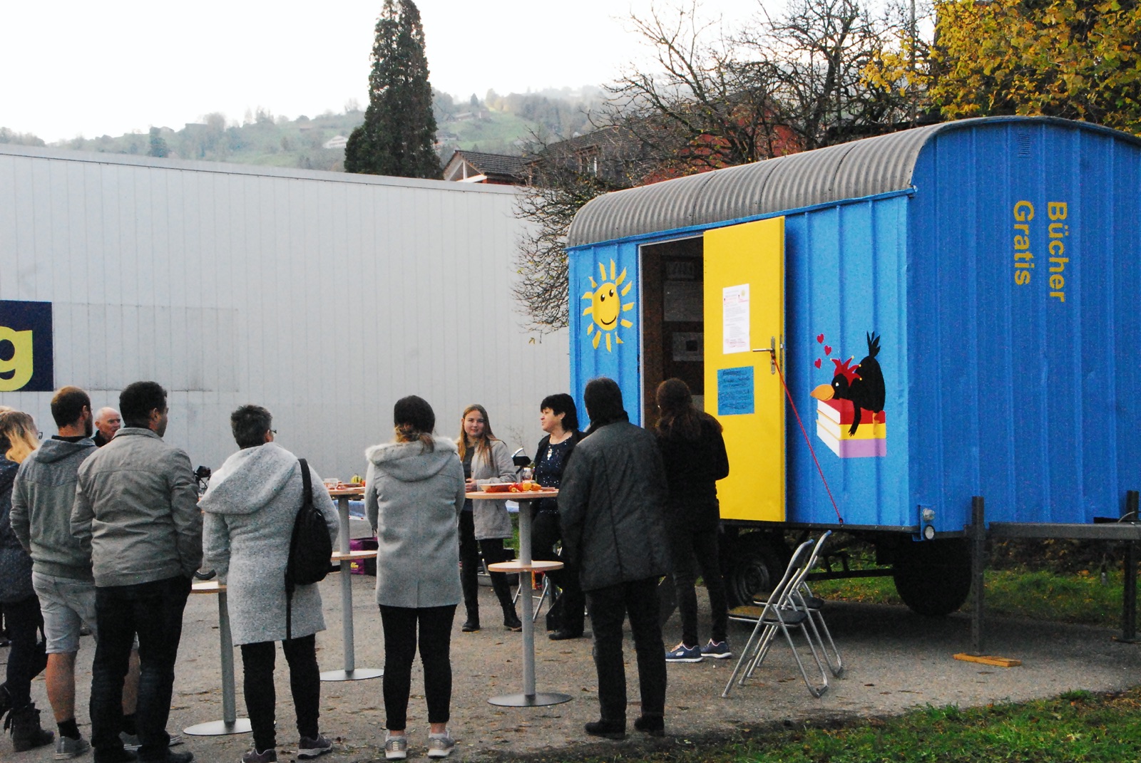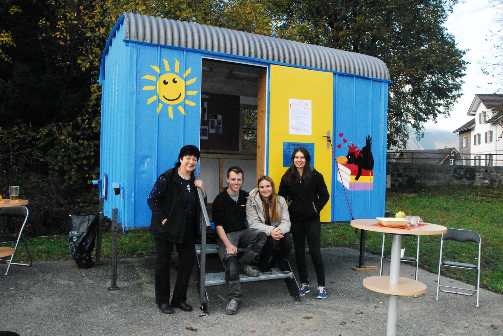 Die Einweihung des Gratisbücherwagen in Grabs, hinter dem Volg, war ein voller Erfolg. Tolle Arbeit der Malerinnen Sabrina und Corinna, sowie dem Allrounder David. Interessierte Berufsschullehrer und Lehrmeister. Unterstützung durch beide Familien, super Apero von Sabrina und ihrer Mama und viele begeisterte Besucher.