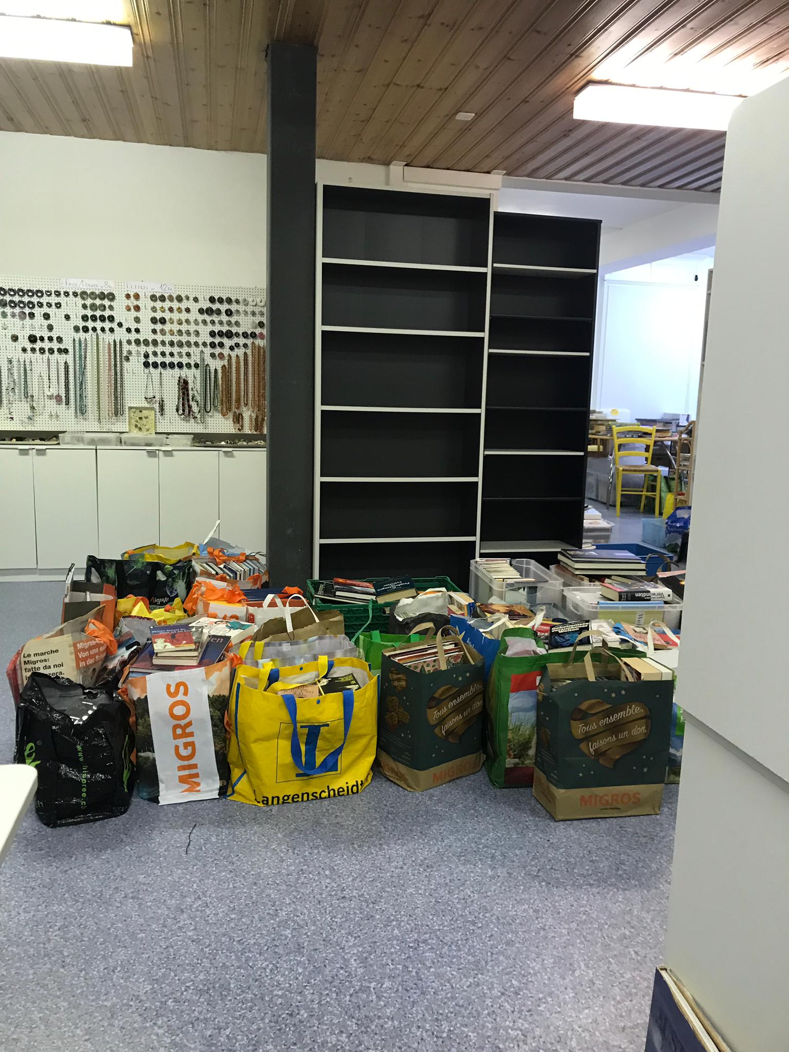 Gratis Bücher im blauen Wagen hinter dem Volg