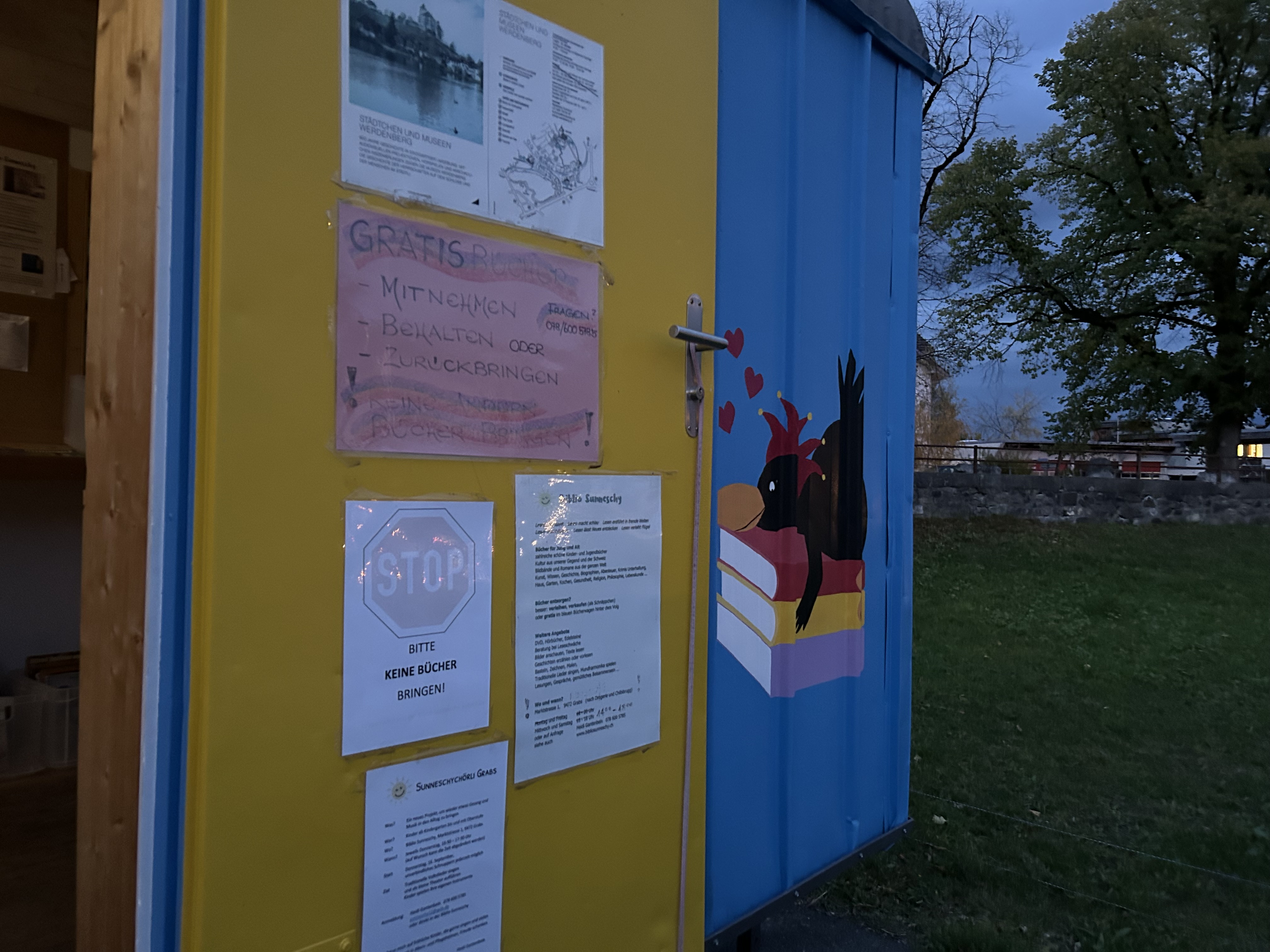 Gratis Bücher im blauen Wagen hinter dem Volg